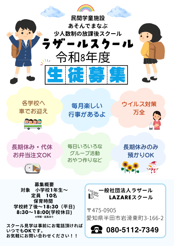 LAZAREスクール「学習支援スクール」とは、学習の遅れが気になる子・発達障害・グレーゾーン、不登校のお子様に向けた学習指導や、受験対策・定期テスト対策を行なっています。